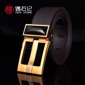 遇石记泰山撑腰东岳款真皮商务镶嵌泰山碧玉腰带