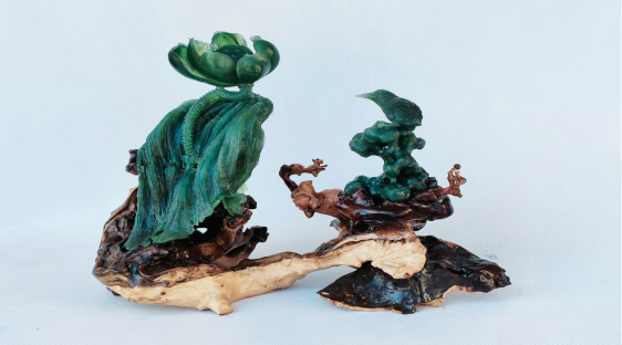 遇石记精心创作的泰山玉雕作品《龙腾盛世》《松》分别喜获“荷花杯”山东省工艺美术设计创新大赛金奖、银奖。